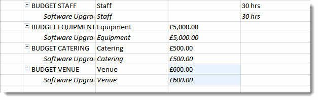 Now enter you budget values against each budget resource. For work resources enter the budget in hours in the Budget Work field. For cost resources enter the budget value as a monetary value in the Budget Cost field. If you have a budget which has been created as a material resource, enter the value in the Budget Work field, including the relevant material label.