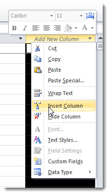 Next you need to insert the custom column into you resource sheet. To do this right-click on the next available empty column – where it says Add New Column