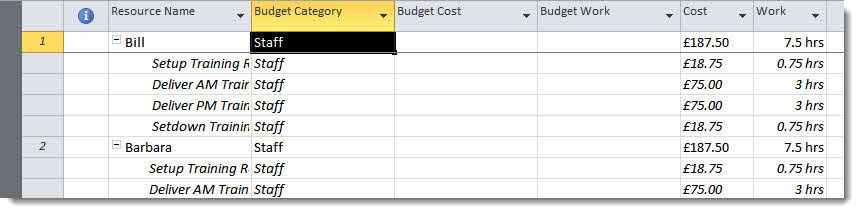 We now need to categorise each resource in the project so they can be compared against the relevant budget they are associated with.