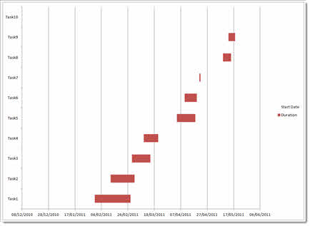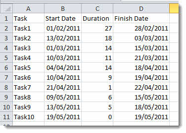 If you don’t own dedicated Gantt chart software you can create simple Gantt charts in Excel by creating a customised stacked bar chart. This tutorial applies to Excel 2010, but the same thing can be achieved in other versions of Excel. Please watch our video and/or follow our step by step instructions. You can also download the featured file. Please see our Excel Dashboard training course if you would like this training delivered at your place of work. Please see our Excel Dashboard training course if you would like this training delivered at your place of work.