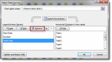 We want to remove the Finish Date series, so select it in the left hand list and then click the Remove button. Click OK to confirm.