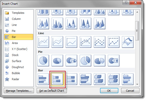 and select the stacked bar chart as your chart type and click OK to confirm.