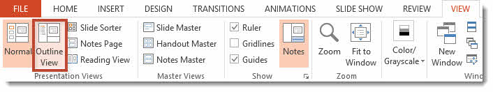 If you are used to working with the Outline Pane in PowerPoint you might wonder how you switch between thumbnail and outline view in PowerPoint 2013.