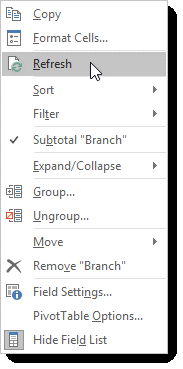 You can even use your PivotTable to recreate your data source. Simply place a field in the Values area of the PivotTable but leave the other areas empty.